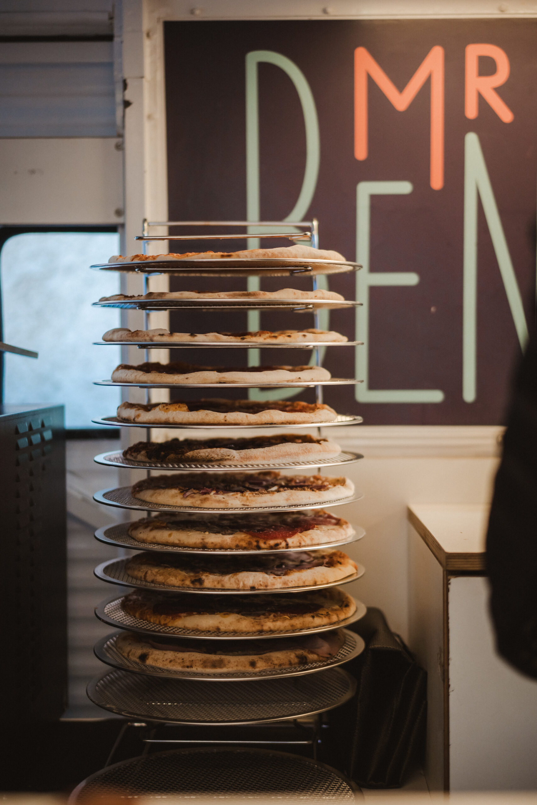Wir backen keine handgemachten Steinofenpizzen vor Ort, sondern setzen bewusst auf ein effizientes Konzept, das für Events optimiert ist: schnell, zuverlässig und planbar – ohne lange Wartezeiten für deine Gäste.