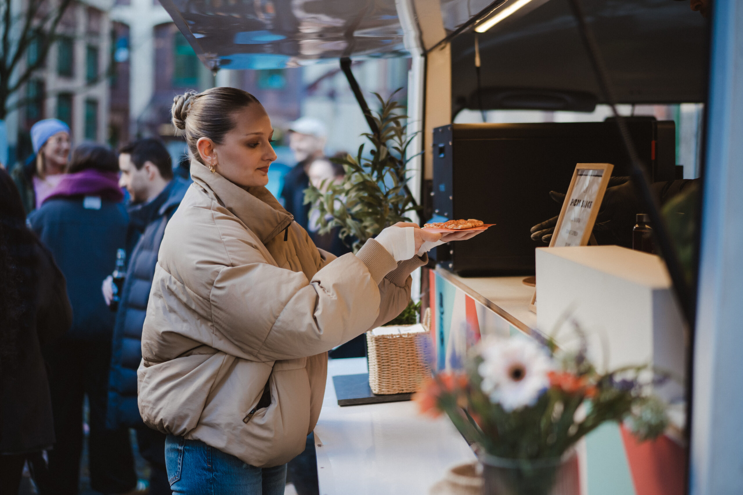 Ob als schneller Stand-Snack auf Messen, als unkomplizierter Genuss für Mitarbeiter auf Firmenevents oder als Highlight auf privaten Veranstaltungen – unser Pizza-Slice-Konzept passt sich jedem Anlass an.