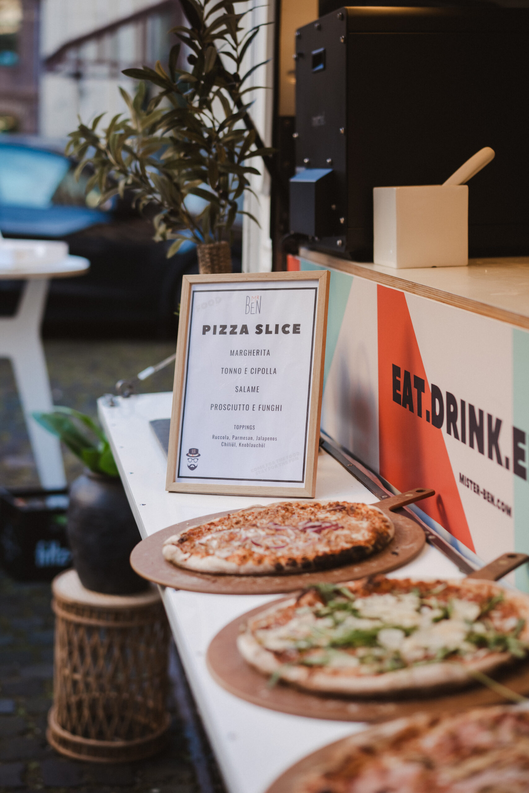 MR.BEN bringt Pizza in moderner Event-Form zu deinem Event: serviert als handliche Slices, perfekt für den schnellen Genuss zwischendurch.