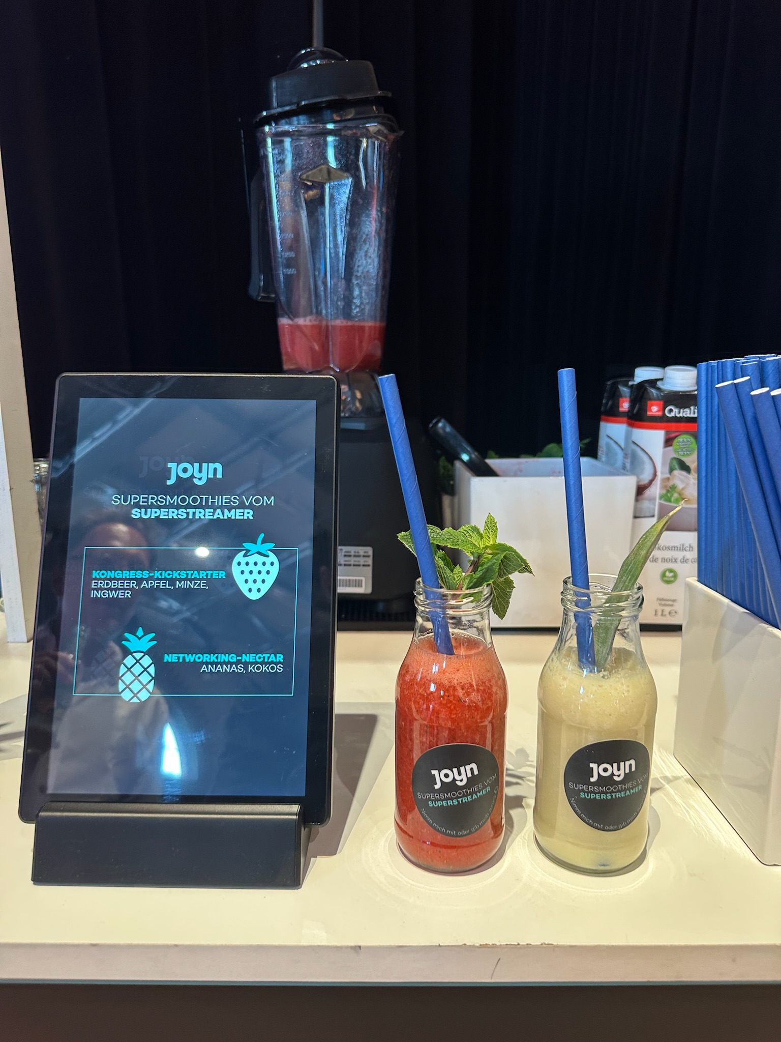 Ob im Büro oder auf der Messe, ein Smoothie belebt den Geist und bringt Energie für den ganzen Tag.